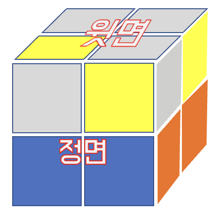 노란색 면의 위치를 잘 관찰을 해보고 정면을 잘 찾아서 회전을 하면 됩니다.