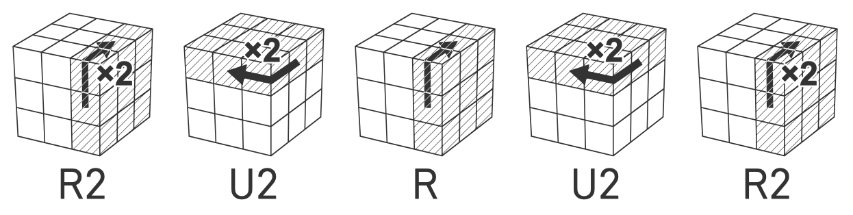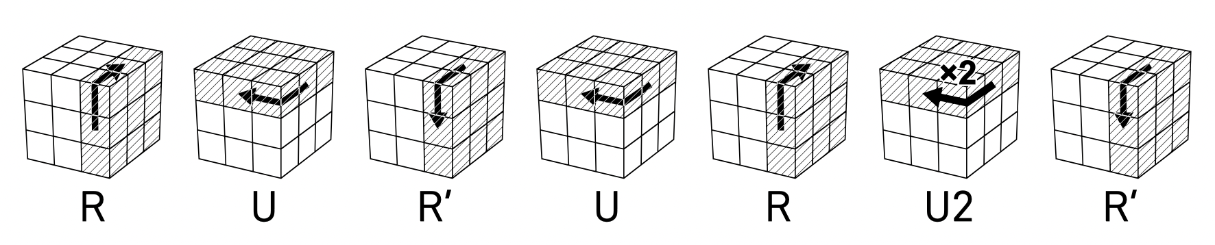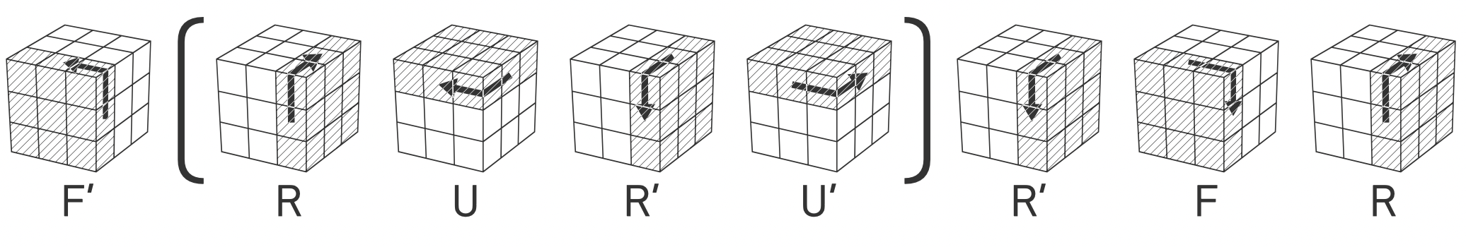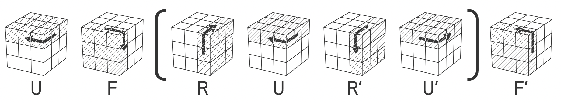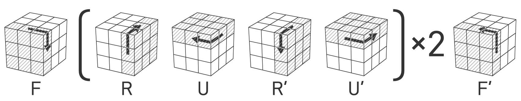 2x2x2 큐브이지만 3x3x3 큐브의 회전 기호를 따라 적었습니다.